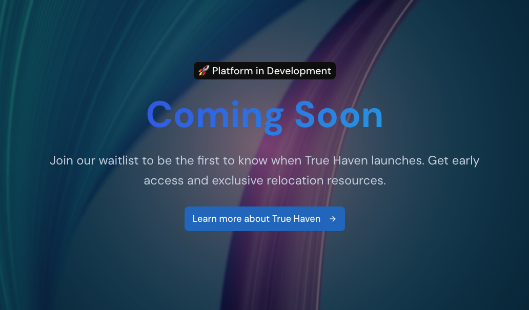 Join our waitlist to be the first to know when True Haven launches. Get early access and exclusive relocation resources.